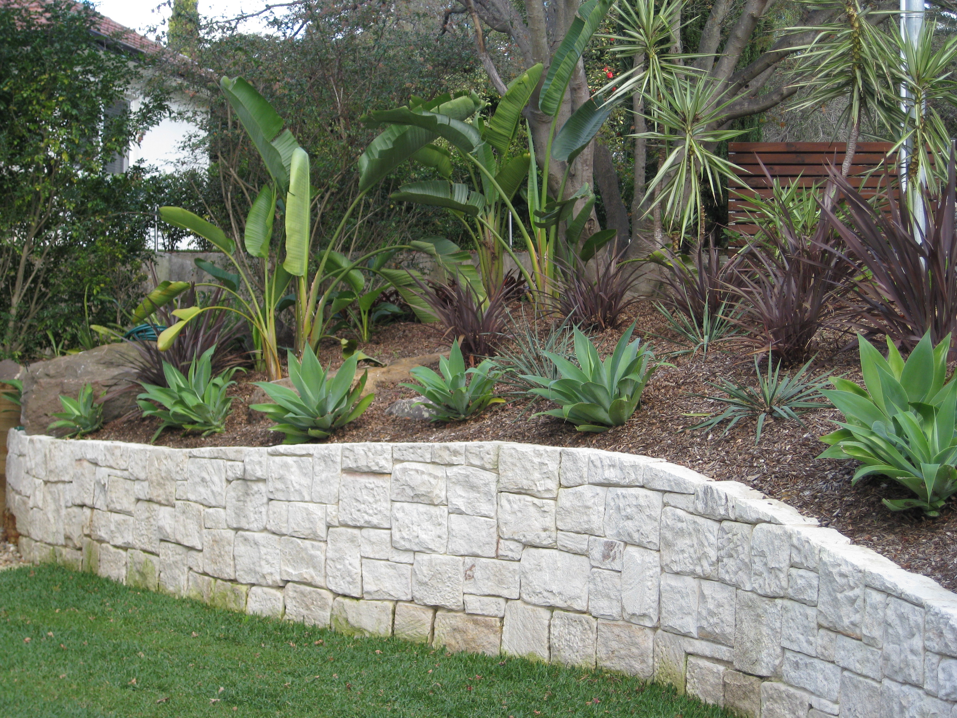 A simple sandstone wall was needed to retain the sloping garden at the front of the home. Sawn sandstone blocks...